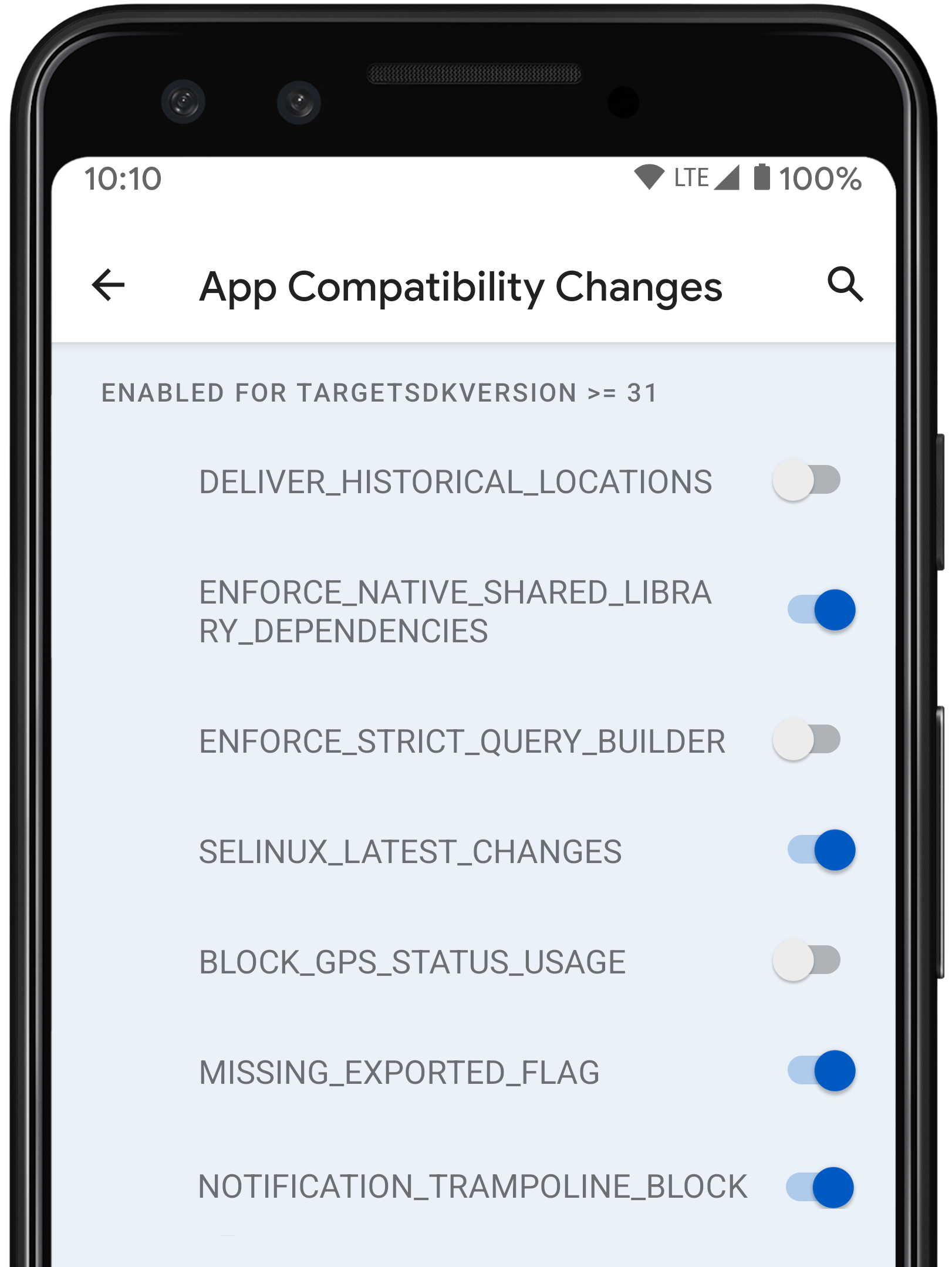 Android 12 (API düzeyi 31) ve sonraki sürümleri hedefleyen uygulamalar, en son SELinux değişikliklerini etkinleştirir. Android 12 (API düzeyi 31) veya daha yeni bir sürümü hedefleyen bir uygulama için bu değişikliğin devre dışı bırakılması etkisizdir. Paylaşılan kullanıcı kimliği kullanan uygulamalar için herhangi bir etkisi yoktur.