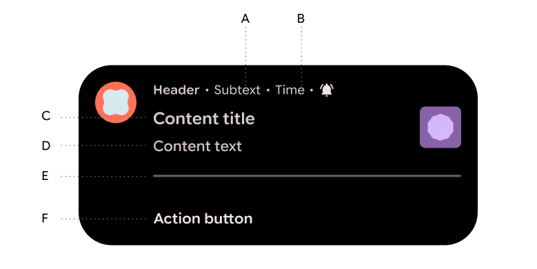 Hình ảnh sau đây cho thấy các phần khác nhau tạo nên thông báo ProgressStyle: