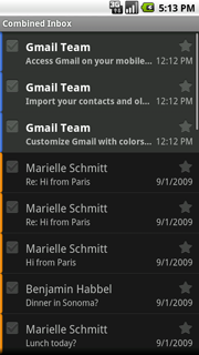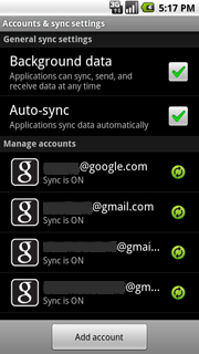 - Exchange 계정을 비롯하여 이메일 및 연락처 동기화를 위해 기기에 여러 계정을 추가할 수 있습니다. (핸드셋 제조업체는 기기에 Exchange 지원을 포함할지 여부를 선택할 수 있습니다.)