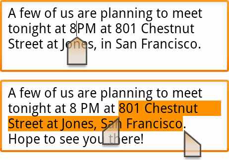 New multitouch key-chording lets the user quickly enter numbers and symbols by pressing Shift+<letter> and ?123+<symbol>, without needing to manually switch input modes. From certain keys, users can also access a popup menu of accented characters, numbers, and symbols by holding the key and sliding to select a character.