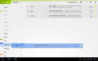 O app de e-mail usa uma nova interface de dois painéis para tornar a visualização e organização de mensagens mais eficientes. O app permite que os usuários selecionem uma ou mais mensagens e, em seguida, selecionem uma ação na barra de ações, como movê-las para uma pasta. Os usuários podem sincronizar anexos para visualizar mais tarde e acompanhar o e-mail usando um widget na tela inicial.