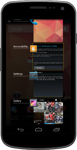 Também está disponível uma nova classe TaskStackBuilder, que permite montar rapidamente uma pilha de tarefas sintética para inicialização imediata ou para ser usada quando uma Activity é iniciada a partir de um PendingIntent. Criar uma pilha de tarefas sintéticas é especialmente útil quando os usuários iniciam Activities a partir de visualizações remotas, como widgets e notificações na tela inicial, porque permite que o desenvolvedor forneça uma experiência consistente e gerenciada na navegação de retorno.