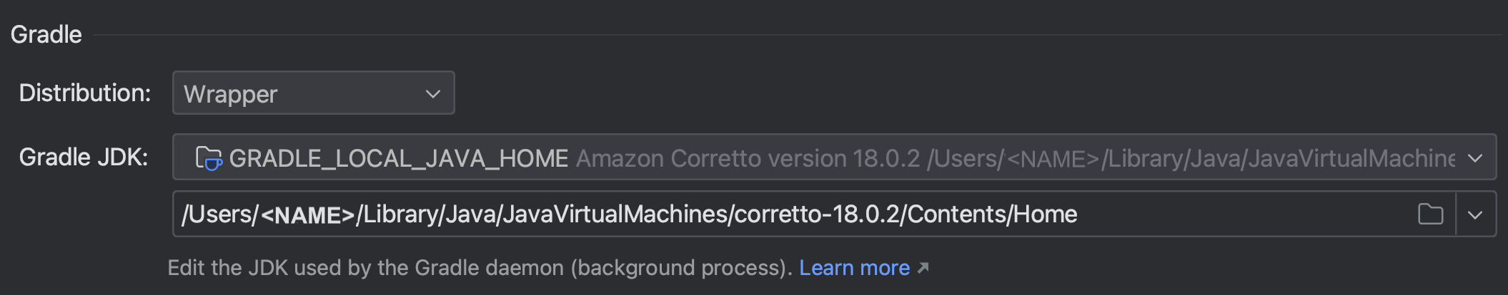 GRADLE_LOCAL_JAVA_HOME: использует свойствоjava.homeв файле.gradle/config.properties, которое по умолчанию соответствует среде выполнения JetBrains.