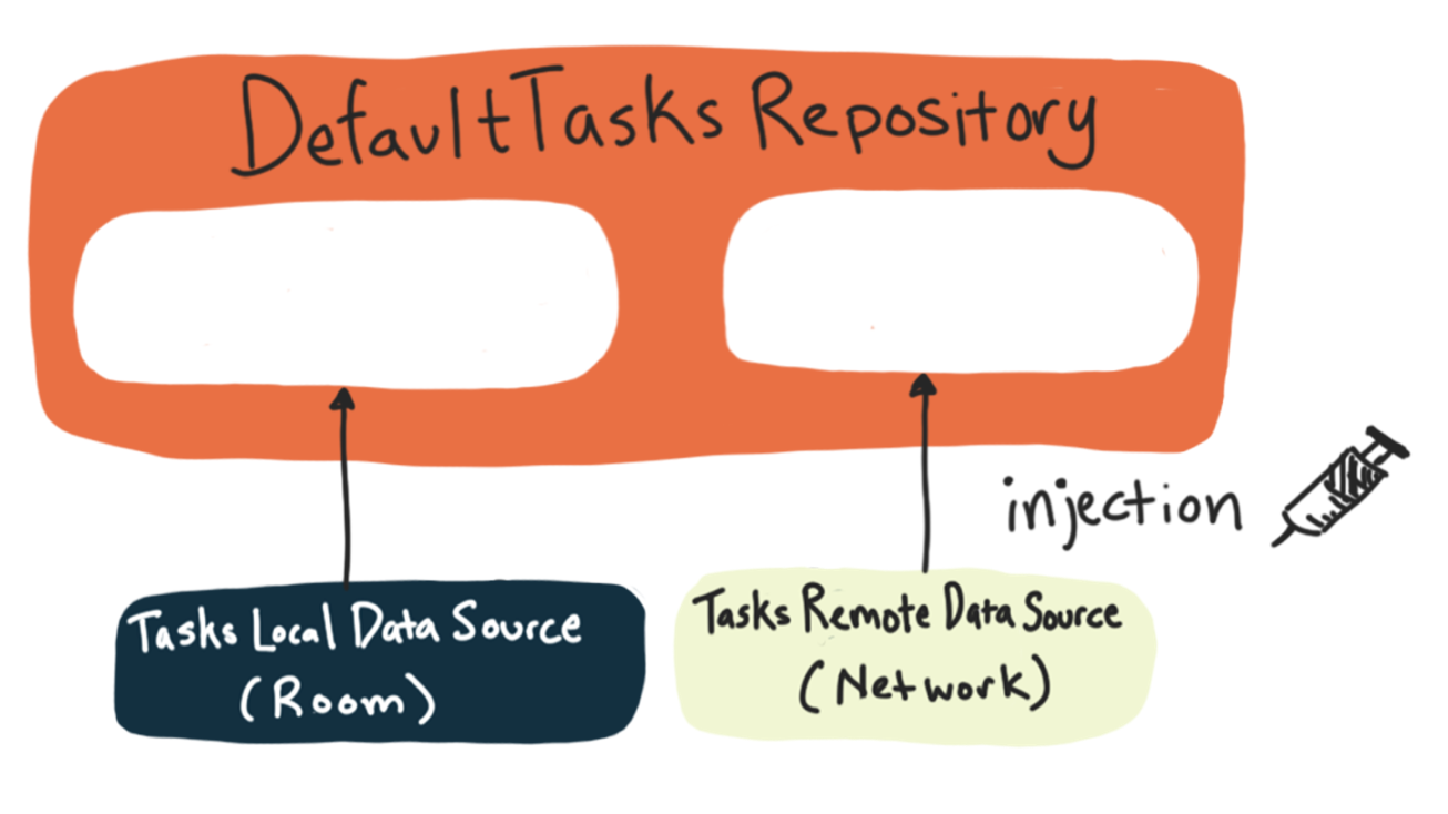 Your goal is to test only the code in that class. Yet, DefaultTasksRepository depends on other classes, such as TasksLocalDataSource and TasksRemoteDataSource, to function. Another way to say this is that TasksLocalDataSource and TasksRemoteDataSource are dependencies of DefaultTasksRepository.