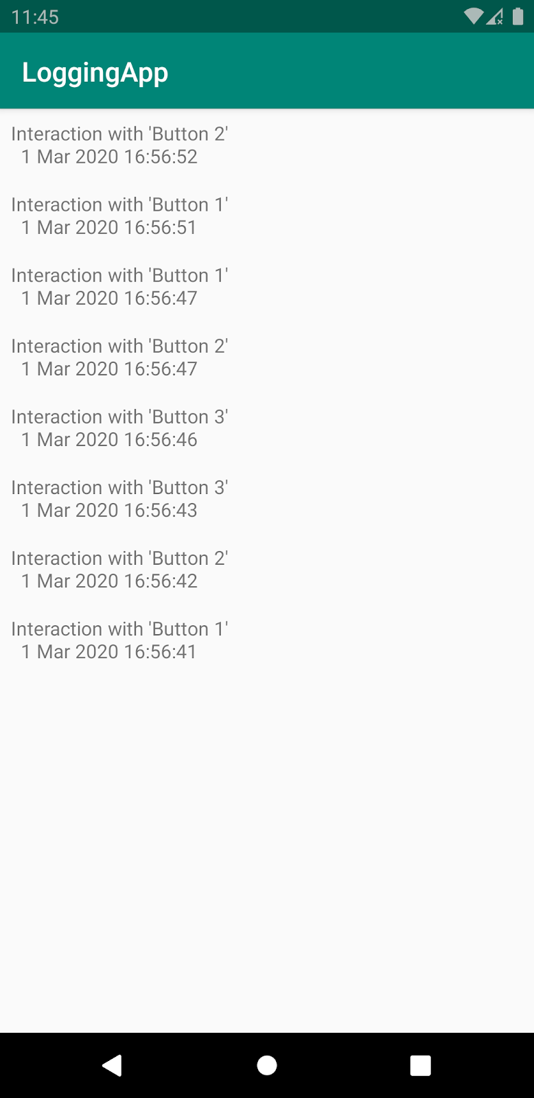 위 이미지와 같이 번호가 매겨진 버튼 중 하나와 상호작용할 때마다 로그가 생성되어 저장됩니다. See All Logs 화면에서 이전 상호작용을 모두 볼 수 있습니다. 로그를 삭제하려면 Delete Logs 버튼을 탭합니다.