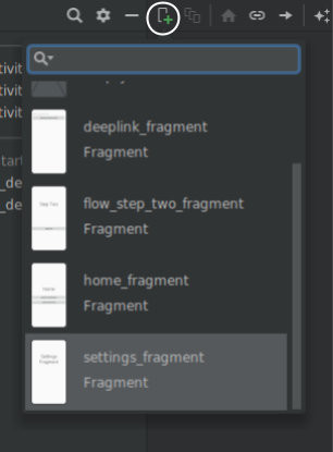2. Cliquez sur l'icône Nouvelle destination, puis sélectionnez "settings_fragment".