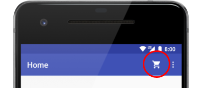 - Haz que el ícono del carrito de compras abra la clase nueva de fragmento con NavigationUI para controlar el menú.
