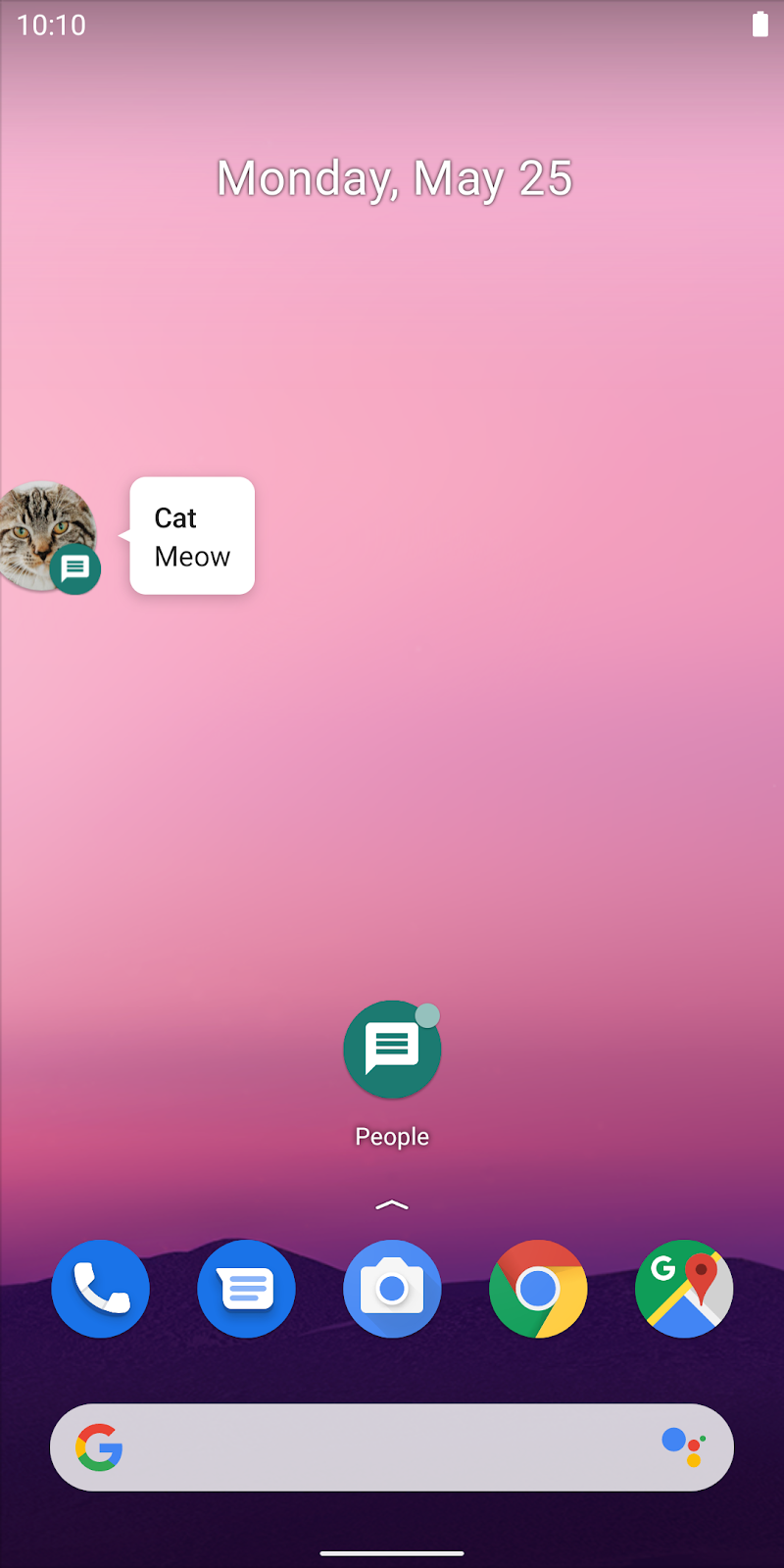 对话是指两个或更多用户之间的双向实时通信。这些对话会在系统通知栏中的专用区域内显示。此外,它们还可以升级为对话泡。对话泡是一种圆形图标,它们浮动在其他应用内容上层,并会跟随用户转到任意位置。对话泡适合用于显示用户希望随时能够轻松访问的持续性活动和操作。
