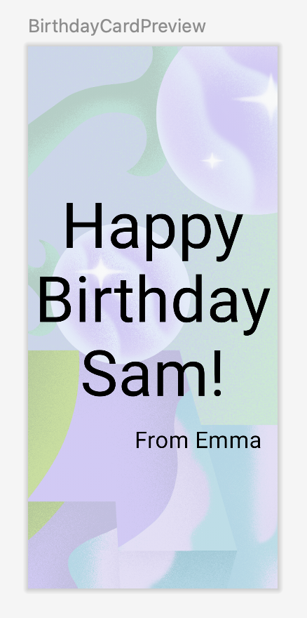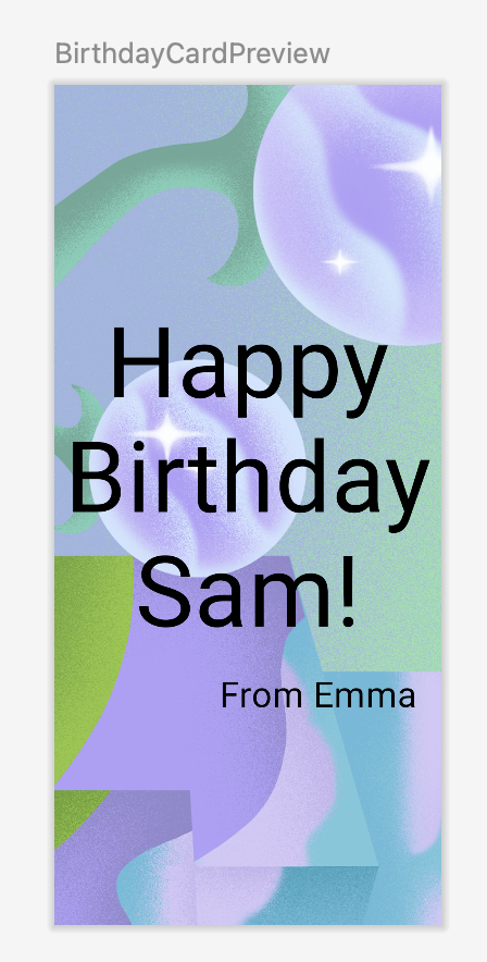 fun GreetingImage(message: String, from: String, modifier: Modifier = Modifier) {