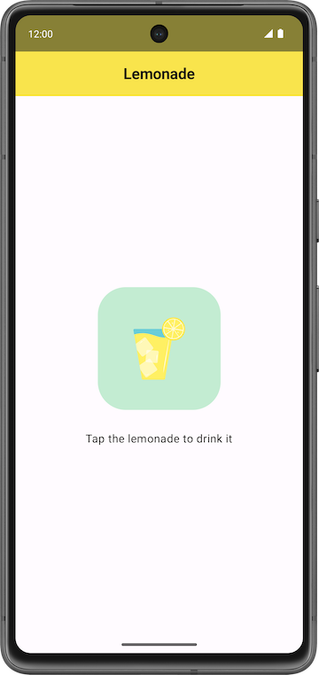 Di aplikasi Lemonade, perhatikan bahwa bagian penting dari aplikasi bertransisi dari satu langkah ke langkah lainnya dengan gambar dan label teks yang berbeda setiap kali ditampilkan. Di awal, Anda dapat mengabaikan perilaku khusus dari status pemerasan karena Anda dapat menambahkan fungsi ini nanti setelah membangun fondasi aplikasi.