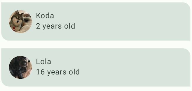 displayMediumcomo estilo paradogName, ya que es información importante y breve. AgregabodyLargecomo estilo paradogAge, ya que funciona bien con tamaños de texto más pequeños.