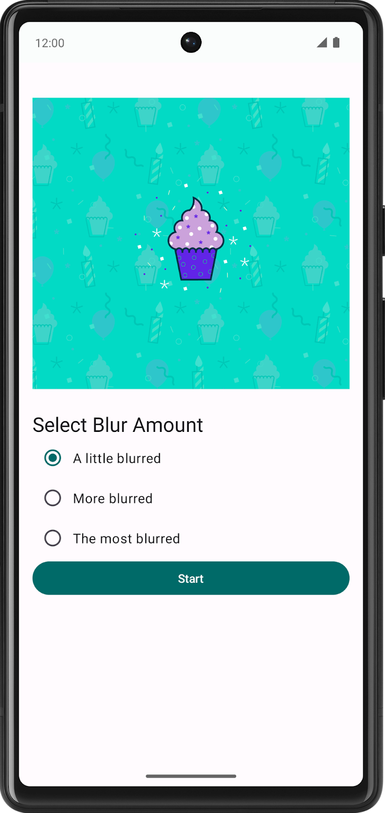 • BluromaticScreen: Contains composable functions for the UI and interacts with the BlurViewModel. The composable functions show the image and include radio buttons to select the desired blur level.