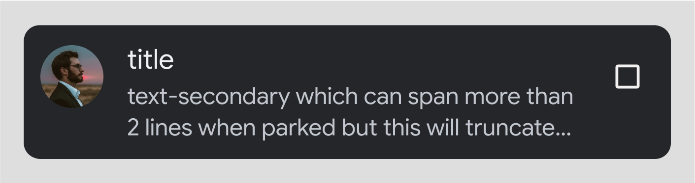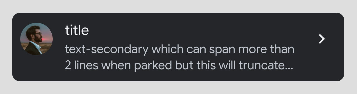 متن ثانویه طولانی تر : اگر متن ثانویه بیشتر از 2 خط باشد، هنگام رانندگی کوتاه می شود. متن کامل فقط در صورت پارک قابل مشاهده خواهد بود.