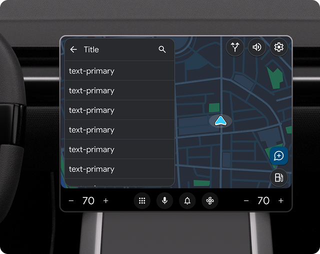 Lượng văn bản phụ được phép trong mỗi hàng của danh sách sẽ thay đổi tuỳ thuộc vào việc xe đang đỗ hay đang lái. Để giảm thiểu sự phân tâm, văn bản sẽ bị cắt bớt thành 2 dòng trong lúc lái xe. Mọi văn bản mà người dùng dự định đọc khi lái xe đều phải xuất hiện ở đầu văn bản phụ.