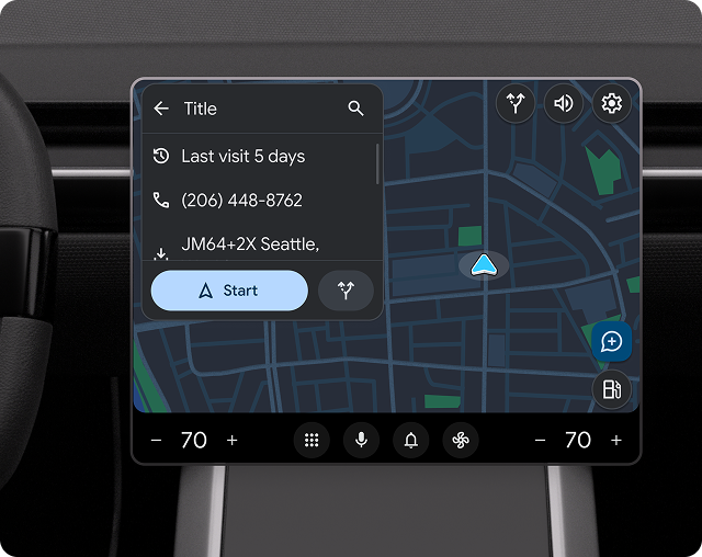 تفاصيل الموقع الجغرافي لتطبيق مواقف سيارات، مع إجراءَين ذَوي صلة