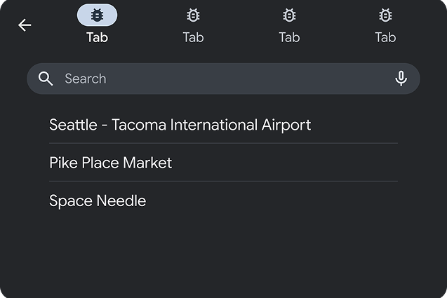 - Tab bar with app icon and up to 4 tabs. Each tab must provide both an icon and a title.