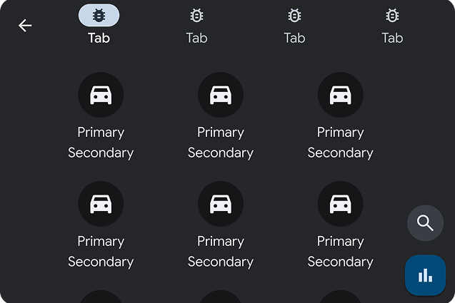 - アプリアイコンと最大 4 つのタブを含むタブバー。各タブにはアイコンとタイトルの両方が必要です。