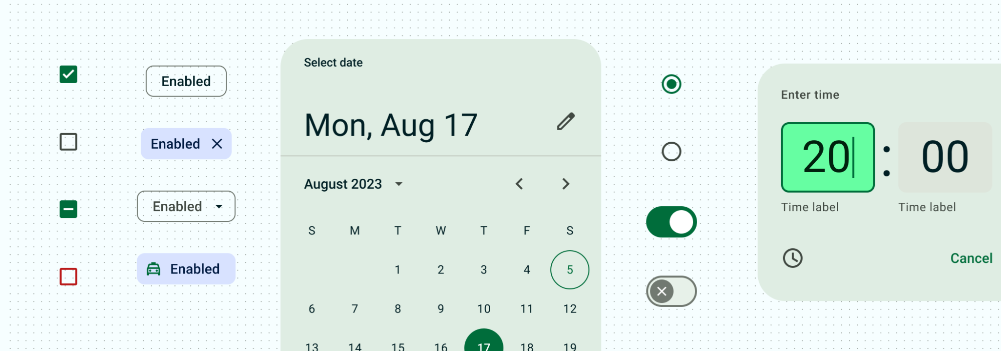 Компоненты выбора позволяют людям указывать выбор. Компоненты выбора позволяют пользователям контролировать и вводить свои решения независимо от того, создают ли они форму с флажками и переключателями , фильтруют с помощью чипов или переключают настройки с помощью переключателей и ползунков .