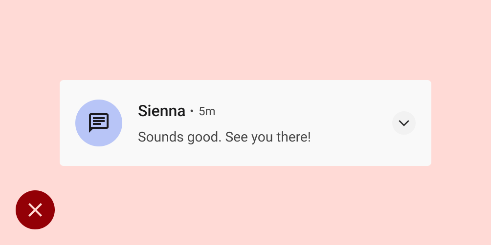 - Contenuti principali: costituiscono l'elemento più in evidenza di una notifica. Le informazioni secondarie, come un timestamp, sono più piccole e consolidate sopra i contenuti principali.