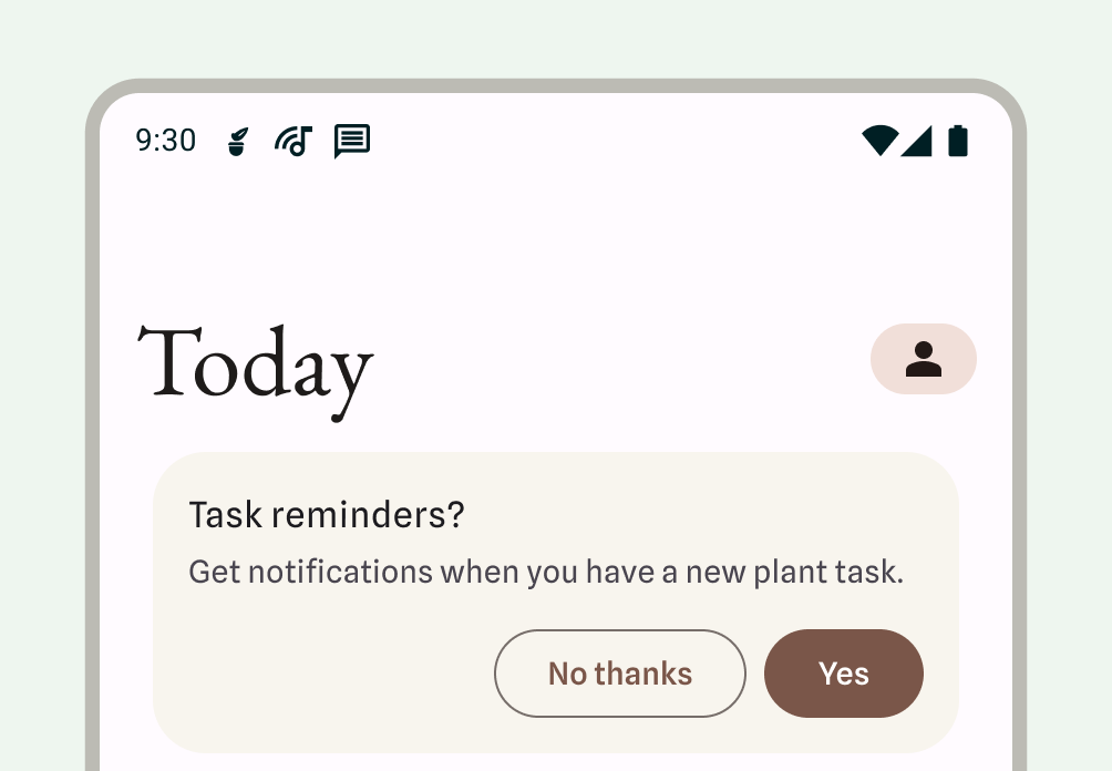 • 确定通知权限模式,考虑通知对应用的重要性,以及在用户体验历程中的何处请求权限。