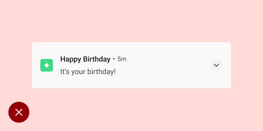 • 主要内容:这是通知中最醒目的元素。次要信息(例如时间戳)较小,并会整合在主要内容上方。