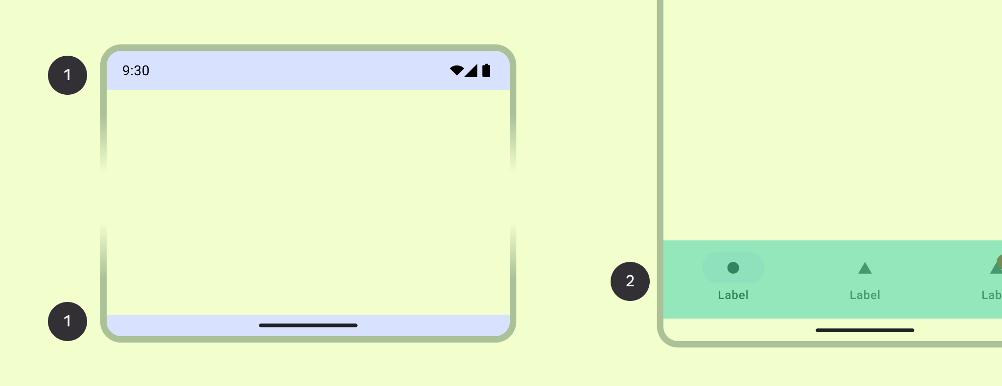 La navegación representa las diferentes indicaciones visuales que permiten al usuario navegar en la app o en la plataforma de Android y acceder a acciones importantes.