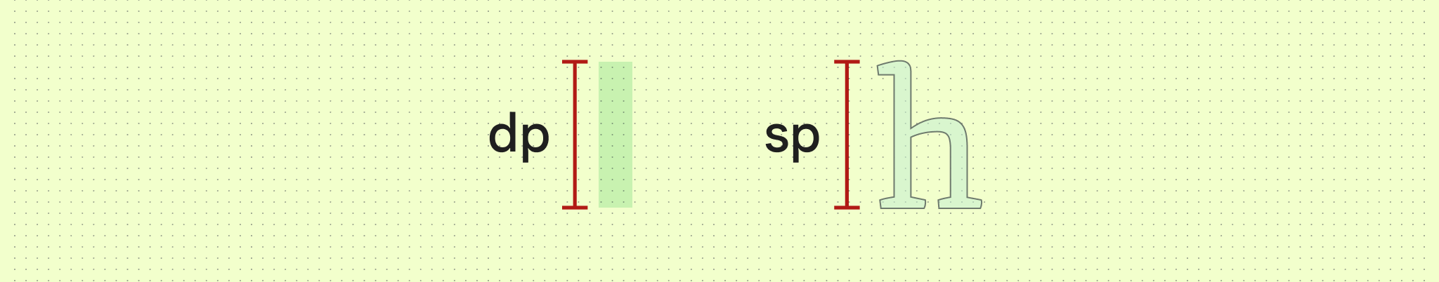 密度非依存ピクセル(dp)とスケーラブル ピクセル(sp)は、Android デバイスを構成するさまざまな画面密度、サイズクラス、フォーム ファクタ、アスペクト比に均一に対応するレイアウトを構築し、フォントを表示するために不可欠です。