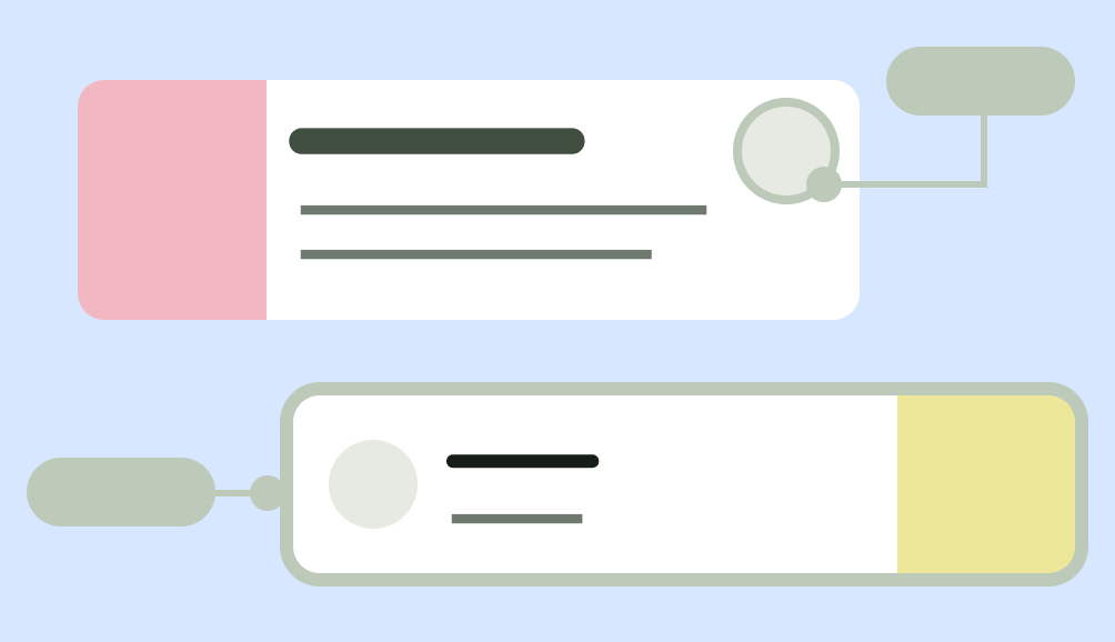 ใช้การจำกัดขอบเขตเพื่อจัดกลุ่มเนื้อหาที่เกี่ยวข้องเพื่อแนะนำผู้ใช้ผ่านเนื้อหาและการดำเนินการ การ์ดที่ใช้การบรรจุอย่างชัดเจนเพื่อจัดกลุ่มเนื้อหาด้วยการดำเนินการที่เกี่ยวข้อง