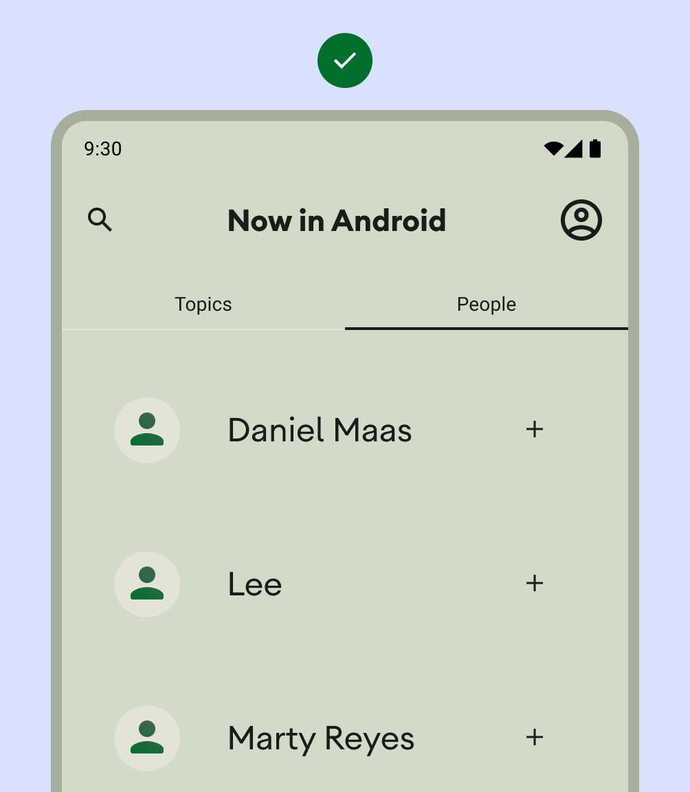 เก็บการโต้ตอบที่สำคัญ เช่น การนำทางหลัก ไว้ในพื้นที่หน้าจอที่เข้าถึงได้ ปุ่มการทำงานแบบลอย (FAB) เป็น จุดโต้ตอบที่โดดเด่นและเข้าถึงได้