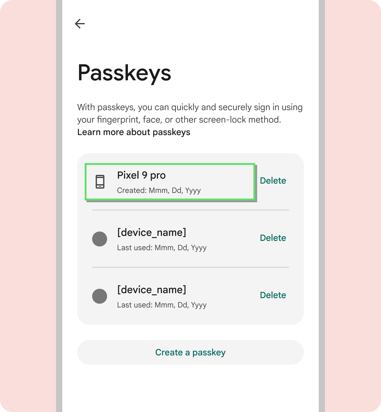 - Einheitliche Botschaft: Formulierung und Design in Aufforderungen zur Passkey-Erstellung in Ihrem gesamten Produkt einheitlich gestalten