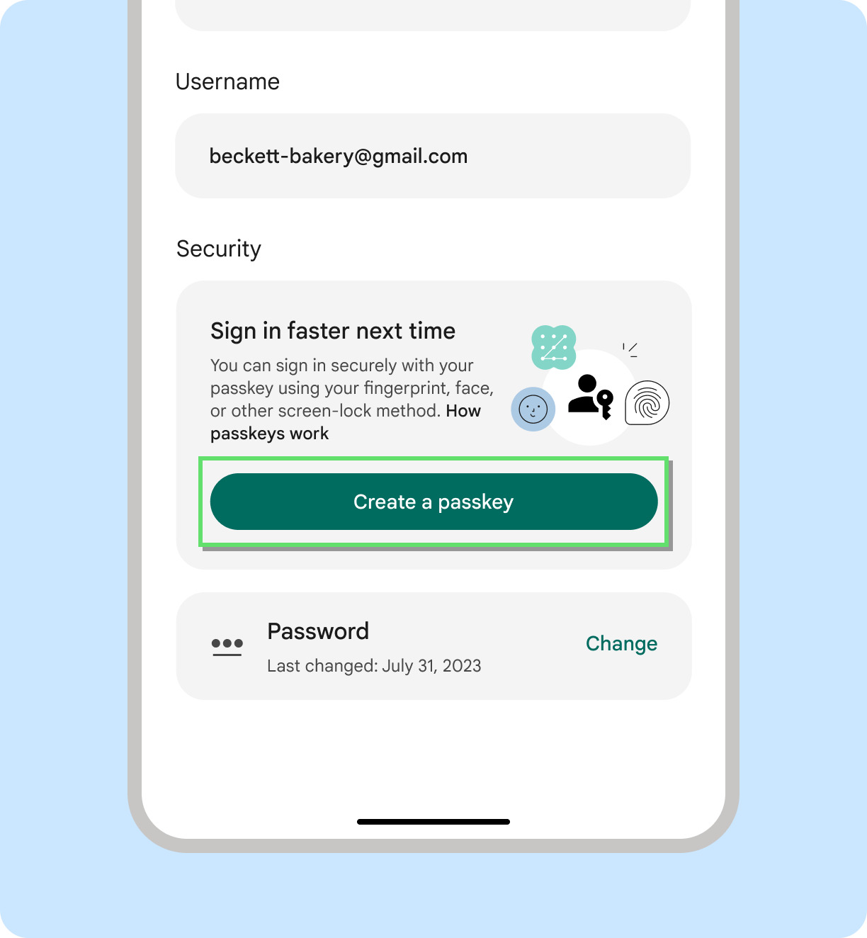 Ürününüzde geçiş anahtarlarını desteklemek için Kimlik Bilgisi Yöneticisi API'sini kullanın. Şurayı keşfedin: uygulama kılavuzuna başvurun.