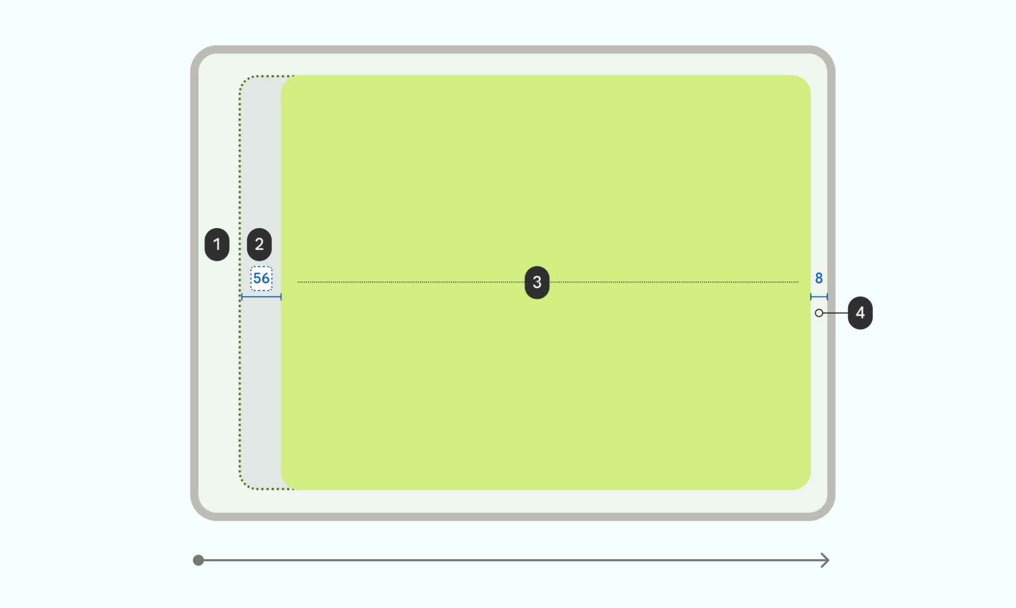 4 Deja un espacio de 8 dp desde el borde de la pantalla.