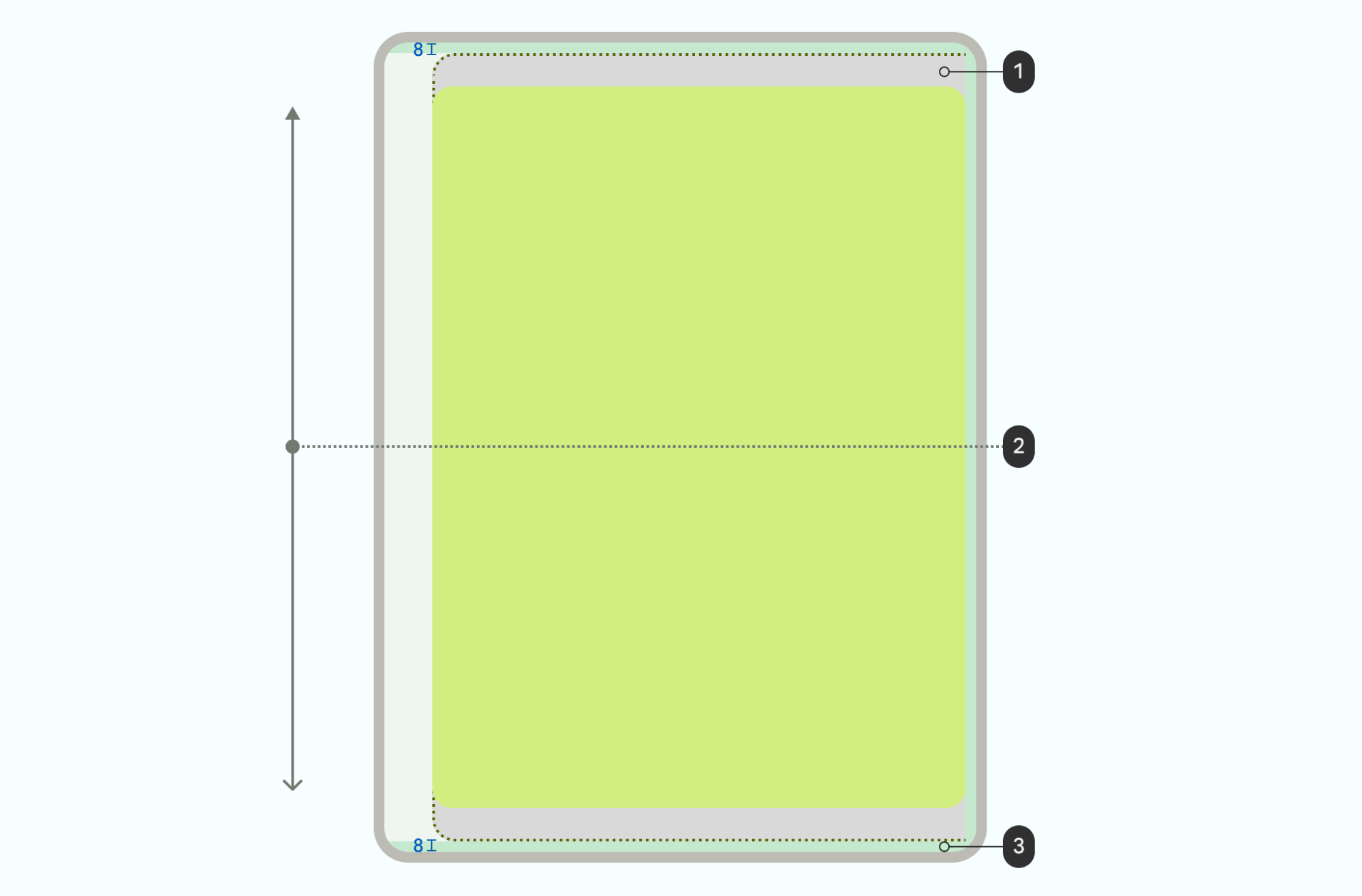 - Y kaydırma özelliğini, yüzeyin hiçbir zaman 8 dp ekran kenar boşluğunu aşmayacak şekilde sınırlayın.