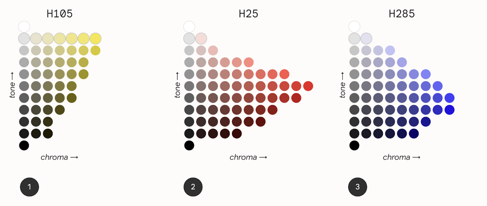 Hue, chroma, and tone