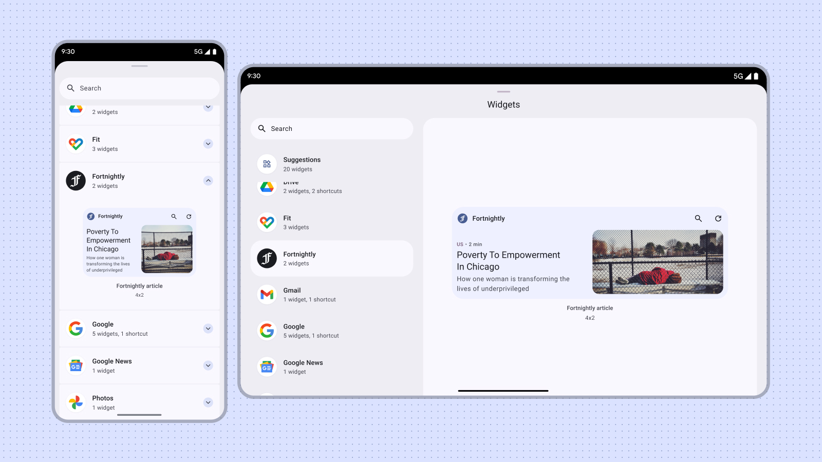 Si quieres obtener más información para elegir un tamaño predeterminado apropiado para tu widget, consulta Tamaño.
