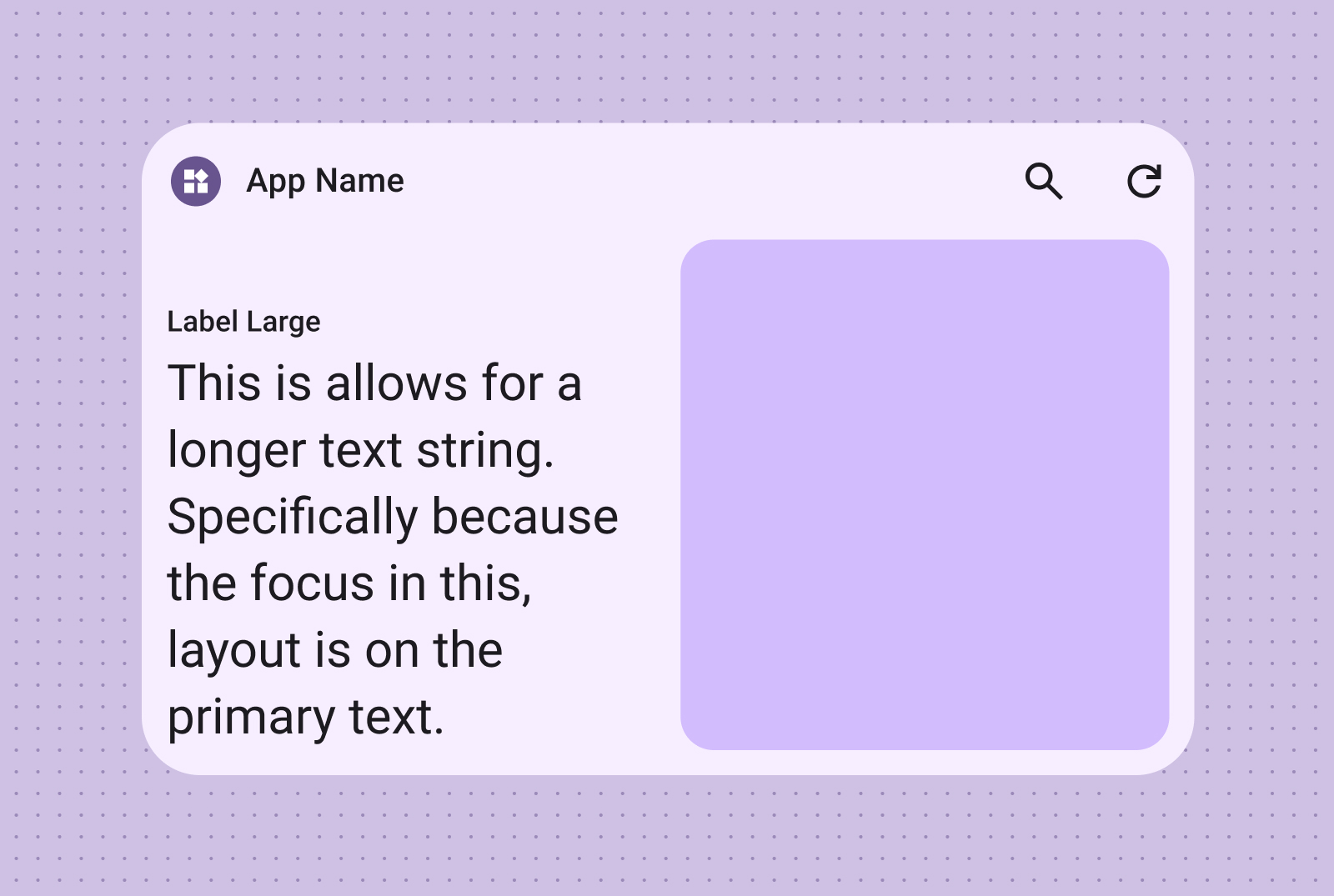 タイトル、ステータスの更新、簡単な説明、または 1 行のテキストで効果的にメッセージを伝える必要があるシナリオに適しています。ウィジェットのサイズに基づいてテキスト コンテンツを動的にスケーリングする方法については、標準レイアウトのサンプルをご覧ください。