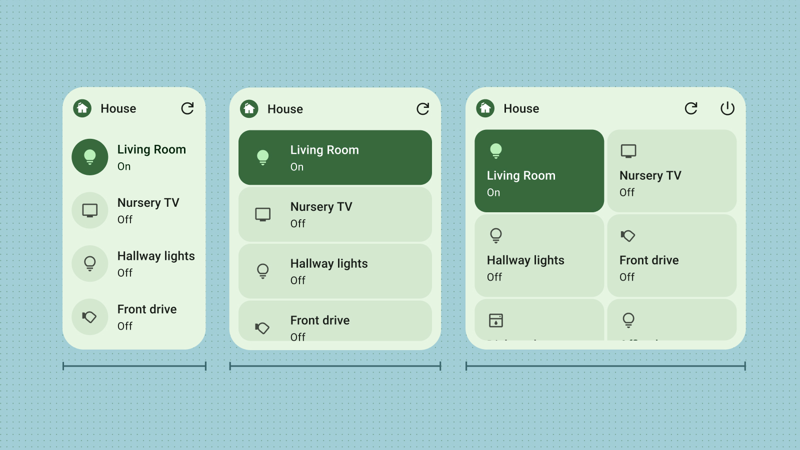 これらの値は Google Pixel デバイスに基づいています。これらのサイズは、ウィジェットのデザインの開始点として使用してください。さまざまなサイズとさまざまなデバイスでウィジェットを徹底的にテストして、質の高いユーザー エクスペリエンスを実現します。