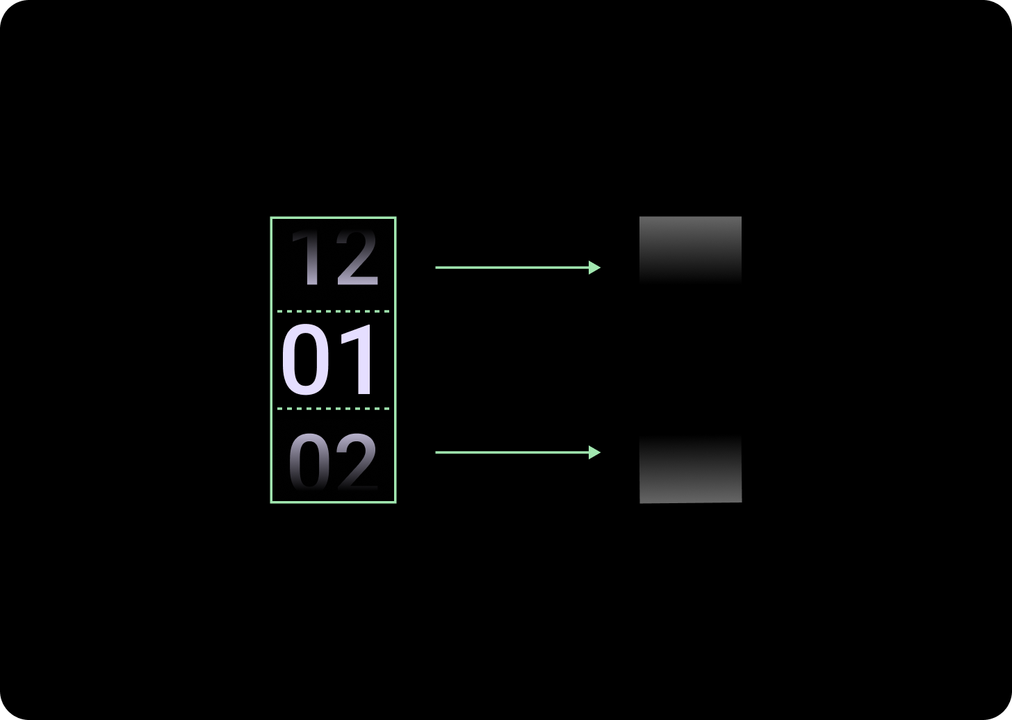 Độ dốc trên cột Bộ chọn được xác định theo chiều cao theo không gian có sẵn. Cả hiệu ứng chuyển màu trên cùng và dưới cùng đều được đặt ở một phần ba (33%) chiều cao có sẵn. Điều này có nghĩa là ở mỗi kích thước màn hình có sẵn, độ dốc sẽ điều chỉnh theo tỷ lệ. Nằm độc lập với bố cục cột.