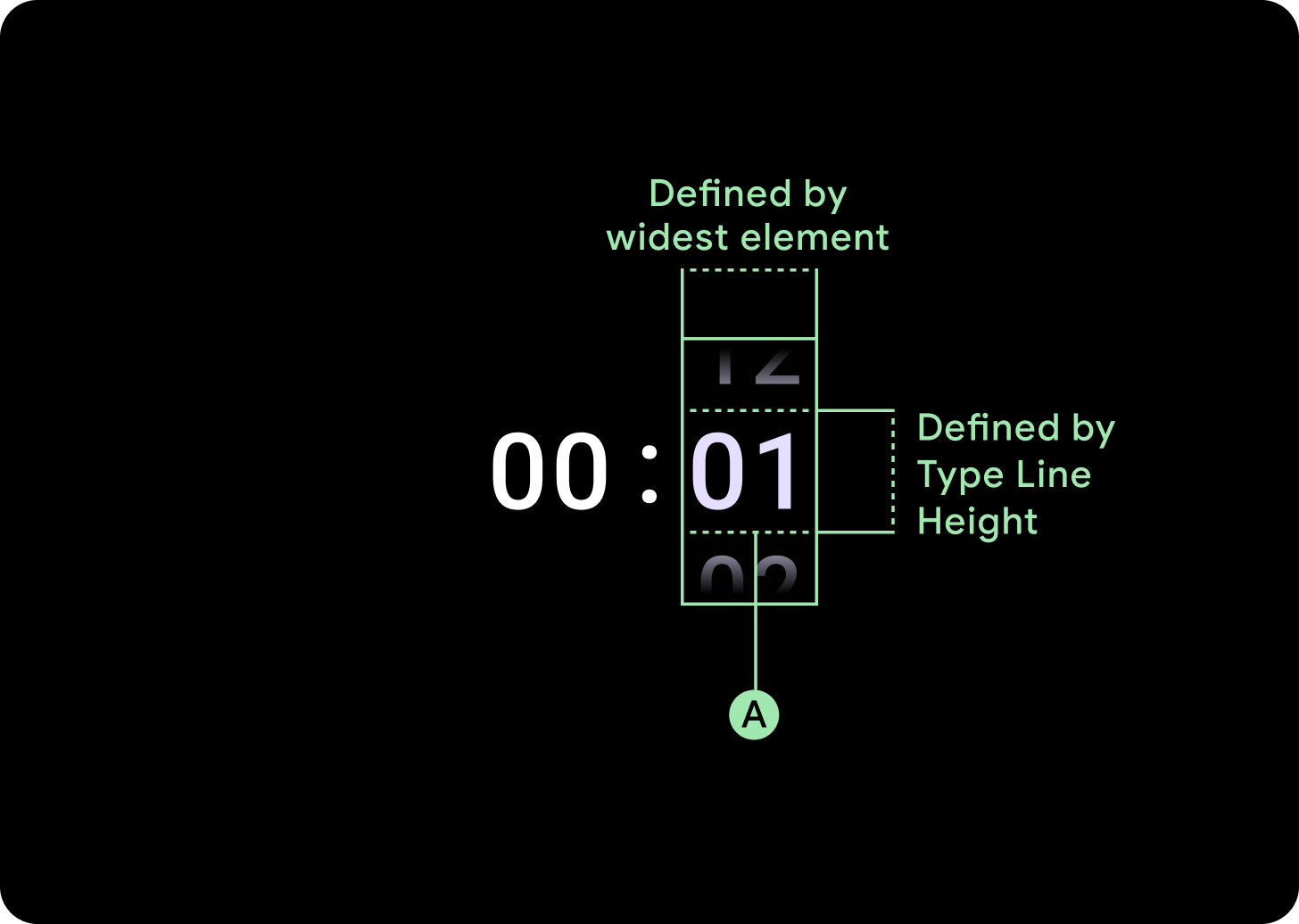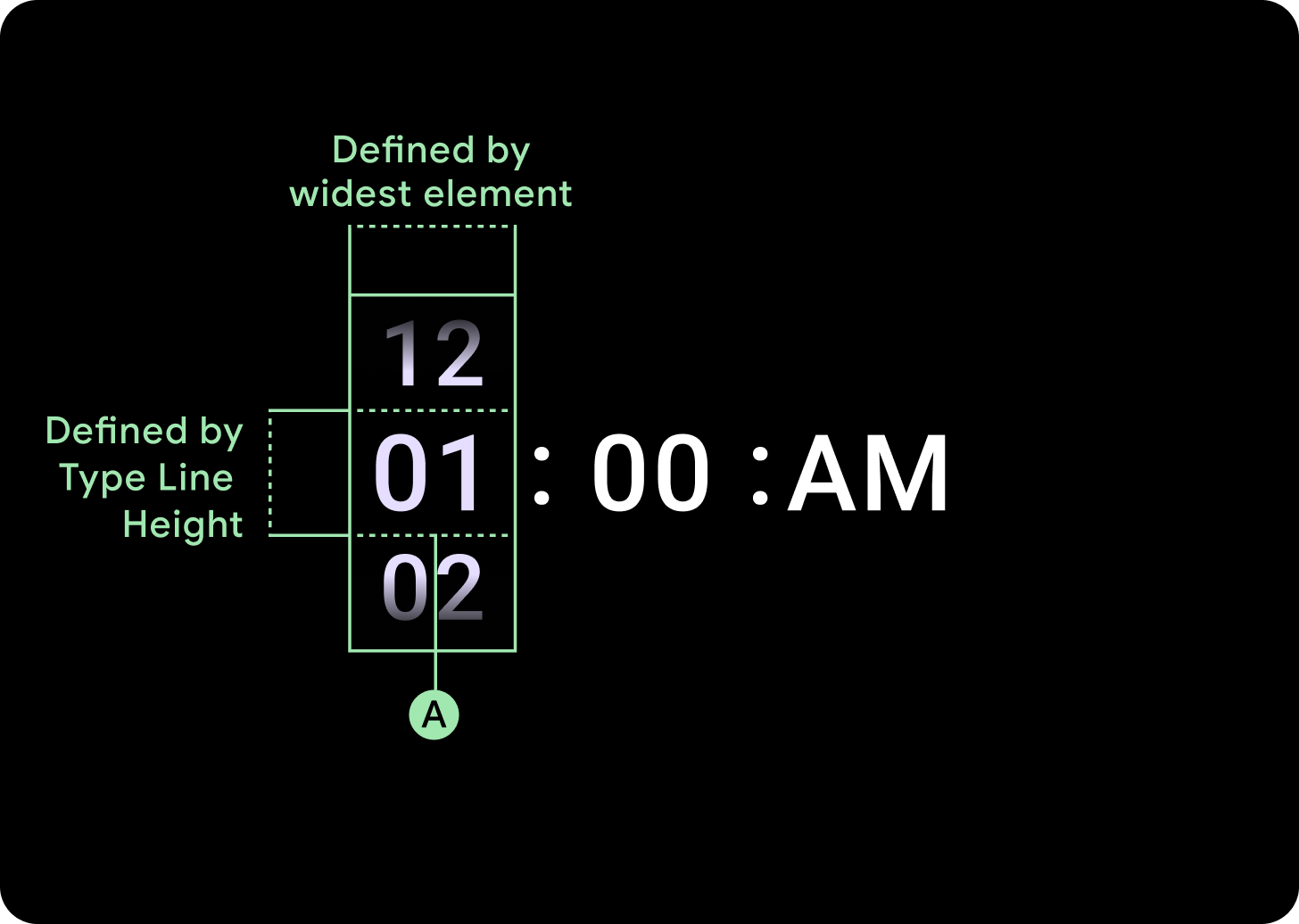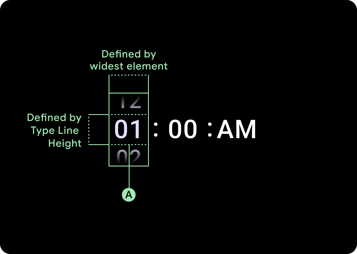 Ví dụ: các số sẽ tính chiều rộng của "00" rồi đặt chiều rộng. Đối với các trường văn bản, chẳng hạn như trường tháng, sẽ được tính là chiều rộng của "MMM" (chữ cái rộng nhất trong bảng chữ cái Latinh). Do đó, chiều rộng và chiều cao (là chiều cao dòng của kiểu chữ được sử dụng) sẽ chịu ảnh hưởng của phông chữ được sử dụng.