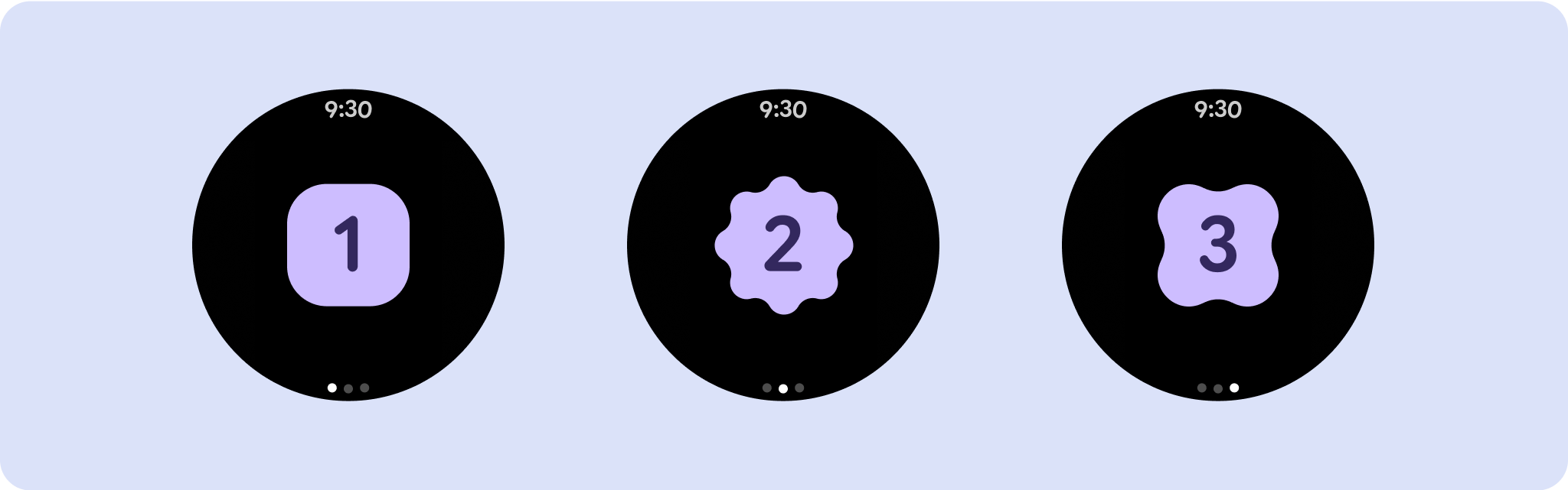 針對獨特的螢幕設計,請在各種螢幕尺寸上徹底測試,確保元件和元素能順利調整,並避免內容遭到裁剪。百分比邊界可有效調整間距,建議您使用 225dp 的斷點,在較大的智慧手錶螢幕上顯示其他資訊和強化功能。