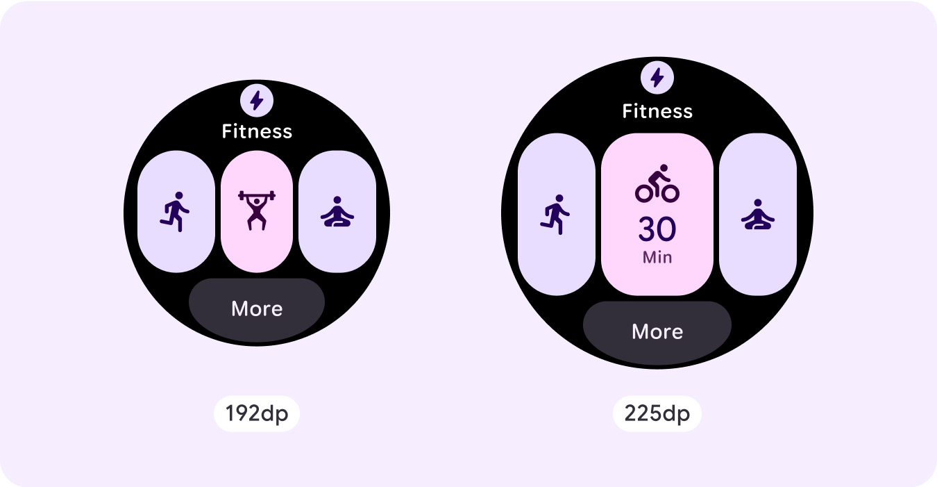 يجب أن تكون هذه التخصيصات محدودة، ويجب ألا تخرج عن نطاق ملف التنسيق الخاص باللوحة. ويهدف ذلك إلى الحفاظ على الاتساق عندما ينتقل المستخدمون بين المربّعات في لوحة العرض الدوّارة على أجهزة Wear OS.