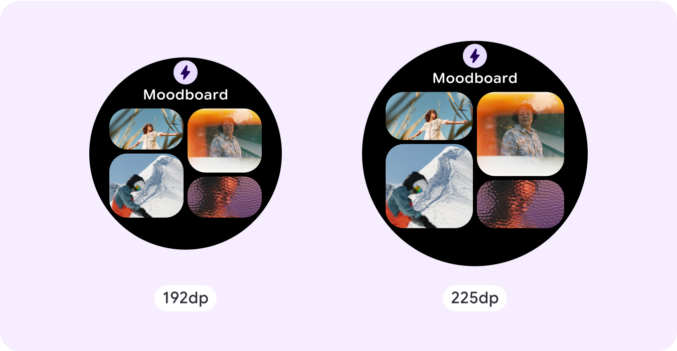 这需要为每个断点采用不同的设计。较大的屏幕设计(225 dp 以上)可以包含以下额外元素: