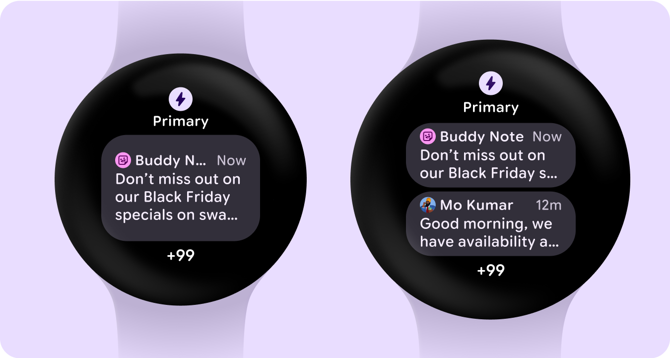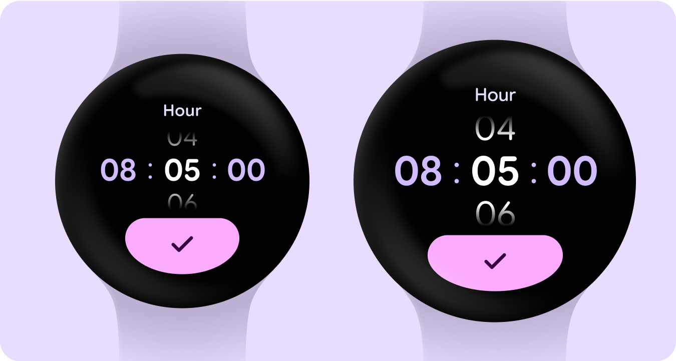 *Nel design dell'interfaccia utente (UI), un punto di interruzione si riferisce a una larghezza dello schermo o a una dimensione dell'area visibile specifica in cui il layout e la presentazione dei contenuti vengono modificati per ottimizzare l'esperienza utente su vari dispositivi. Gli sviluppatori utilizzano il codice (come le query supporti CSS) per definire questi punti e consigliamo di fornire due design in corrispondenza di questi breakpoint nelle specifiche di design. Le dimensioni degli schermi Wear OS iniziano da 192 dp con un punto di interruzione predefinito per gli schermi più grandi a 225 dp.