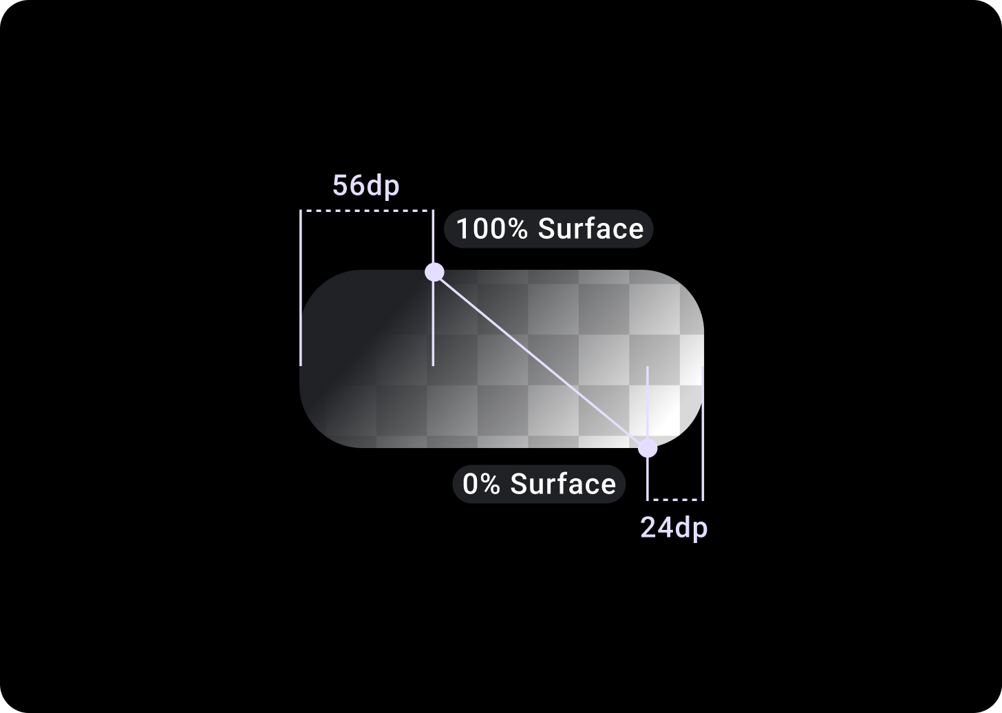 Unten/rechts + 24 dp Abstand von rechts/rechts = 0% Oberfläche