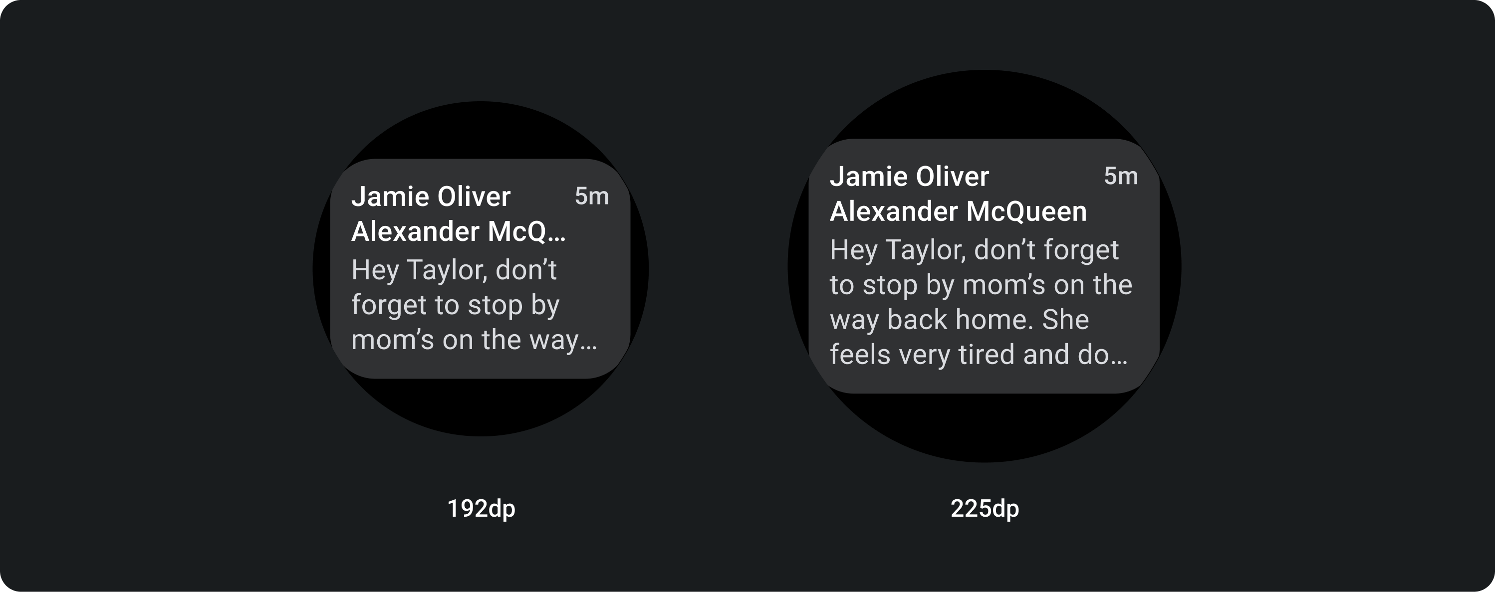 Auf größeren Bildschirmen ist eine zusätzliche Textzeile für den Fließtext zulässig. Damit mehr vom Bild zu sehen ist, fügen Sie am unteren Rand einen vergrößerten Abstand von 24 dp hinzu.