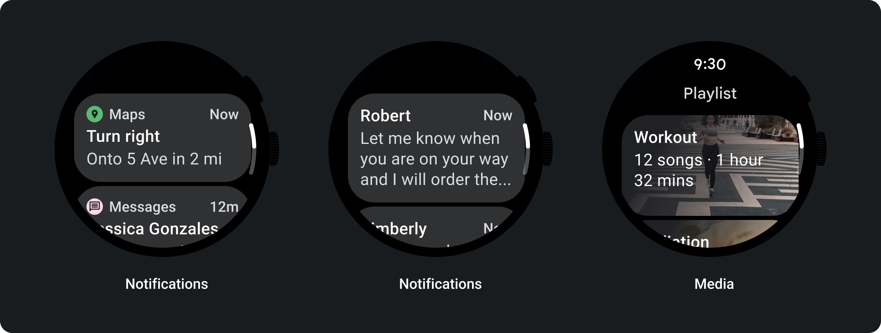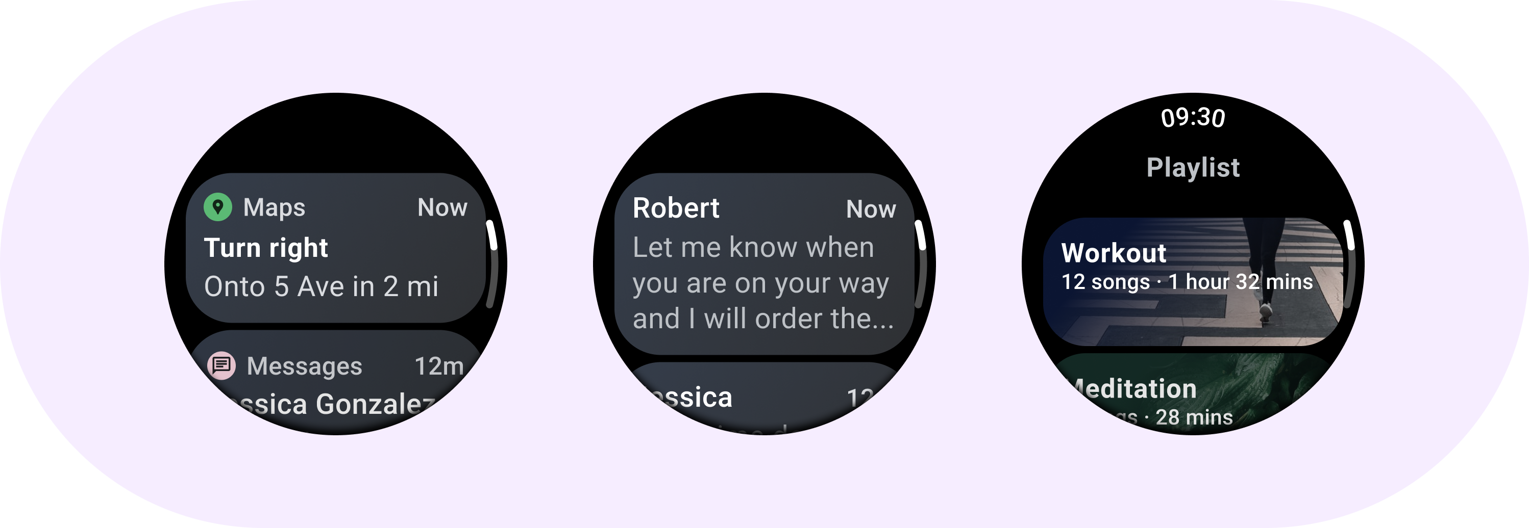गोल आकार वाली स्मार्टवॉच की होम स्क्रीन पर, ऐसे कार्ड जिन्हें स्क्रीन की ऊंचाई के 60% से ज़्यादा ऊंचाई पर सेट किया गया है उन्हें काटा जाता है.