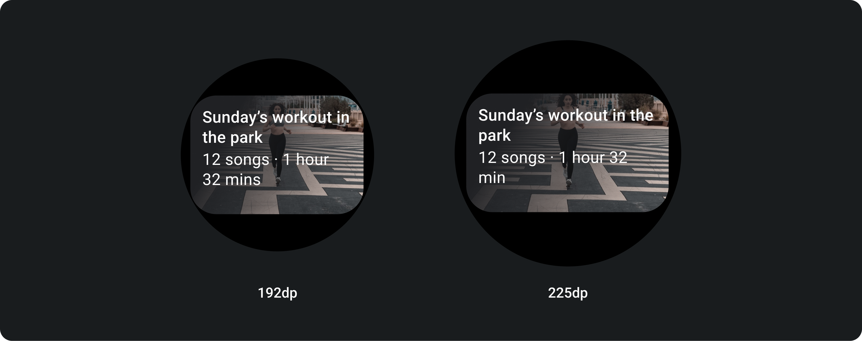 Per impostazione predefinita, le schede sono rettangolari con angoli arrotondati e uno sfondo sfumato. Imposta l'altezza massima della scheda al 60% per assicurarti che venga visualizzata completamente sullo schermo, poiché i display circolari possono ritagliare fino al 20% della parte superiore e inferiore dello schermo.