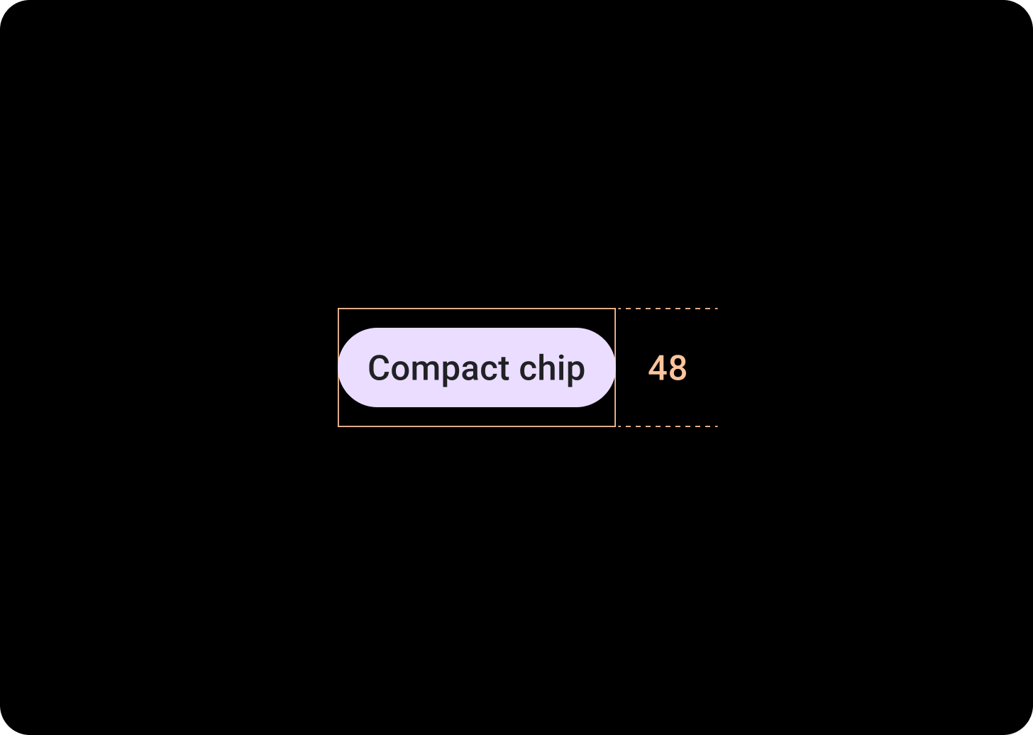 ชิปขนาดกะทัดรัดมีช่องสำหรับไอคอนและช่องสำหรับป้ายข้อความแบบบรรทัดเดียว ชิปขนาดกะทัดรัดมีพื้นที่ที่แตะได้สูง 48 dp