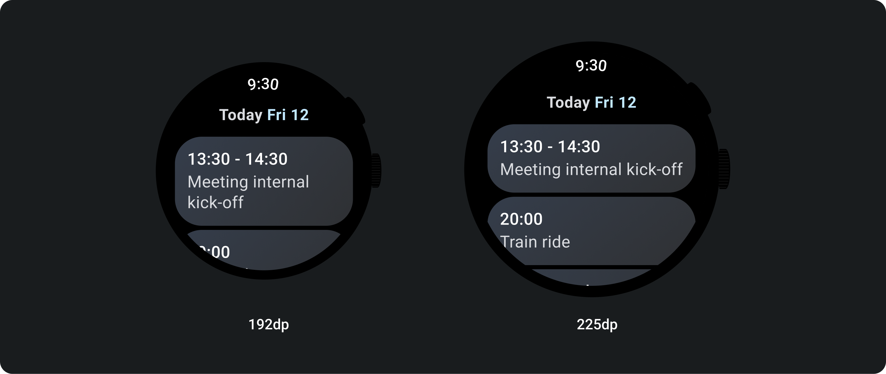 يمكن أن تحتوي القوائم على عناصر ذات ارتفاع ثابت أو متغير. يجب أن يحتوي محتوى القائمة على هامش كافٍ ليناسب الشاشات الدائرية.