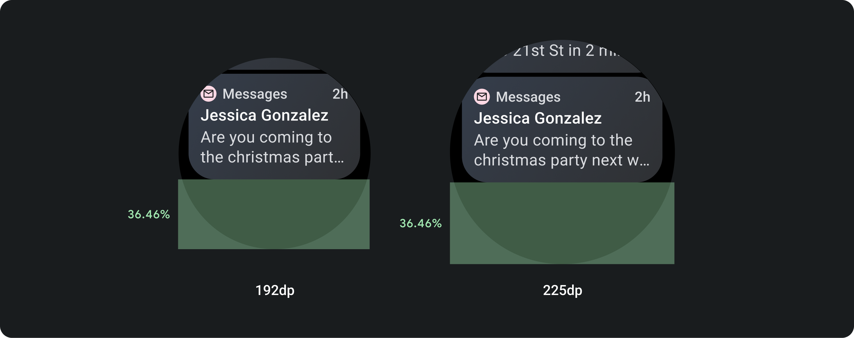 "ScalingLazyColumn" هو تخصيص لـ "LazyColumn" المصمَّم خصيصًا لنظام Wear OS. توفر القوائم إمكانية التوسيع والشفافية، مما يسمح بتصغير المحتوى ويتلاشى في أعلى وأسفل الشاشة لمساعدة المستخدمين على رؤية ما ينبغي التركيز عليه. ترتكز القوائم في منتصف الشاشة، مما يعطي توكيدًا إضافيًا على العناصر الموجودة في منتصف القائمة.